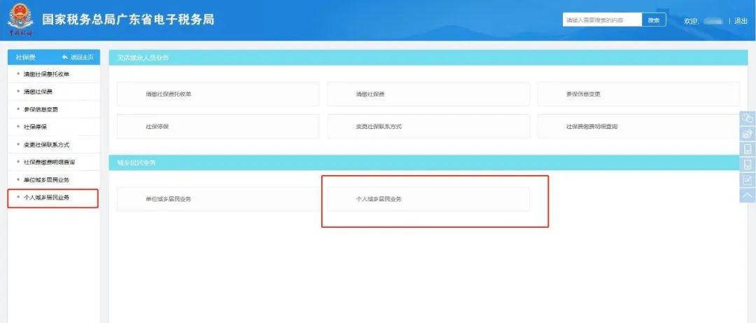 http://www.etax-gd.gov.cn/)選擇自然人登錄,繳納城鄉(xiāng)居民保險費。