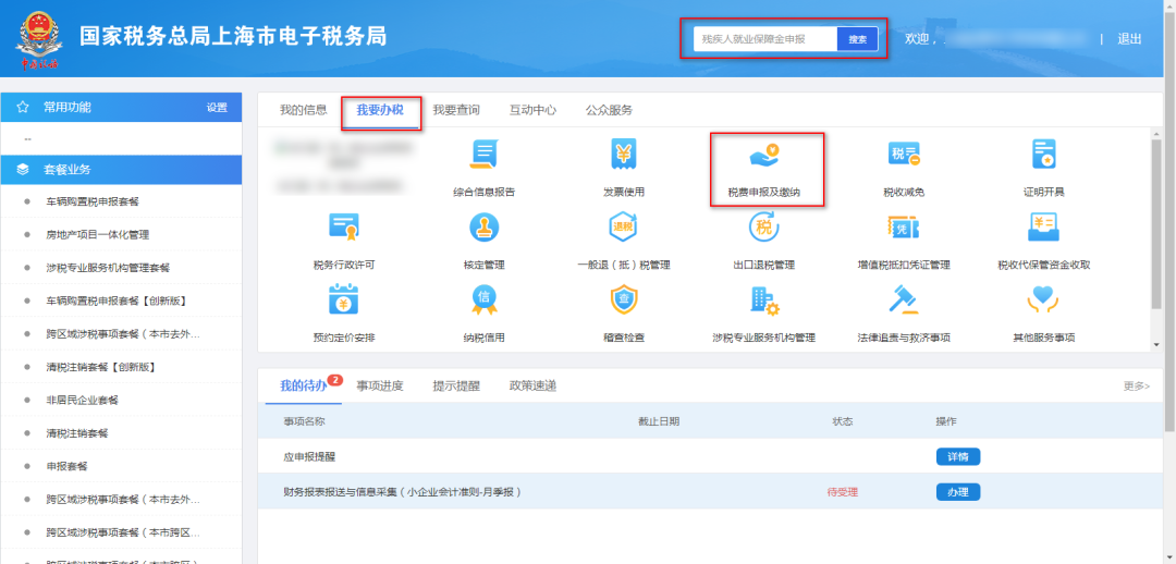 搜索【殘疾人就業(yè)保障金申報(bào)】或通過:我要辦稅—稅費(fèi)申報(bào)及繳納—非稅申報(bào)—【殘疾人就業(yè)保障金申報(bào)】進(jìn)入殘保金申報(bào)模塊。