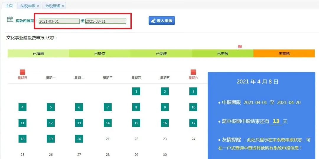 1.登錄江蘇省電子稅務(wù)局,進入“我的代辦”,選擇“文化事業(yè)建設(shè)費-文化事業(yè)建設(shè)費月(季)度申報”進行申報。