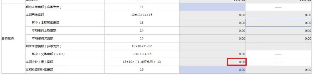 3.在欄次1填寫35000,表格自動計算欄次18“本期應(yīng)補(退)費額”為0。