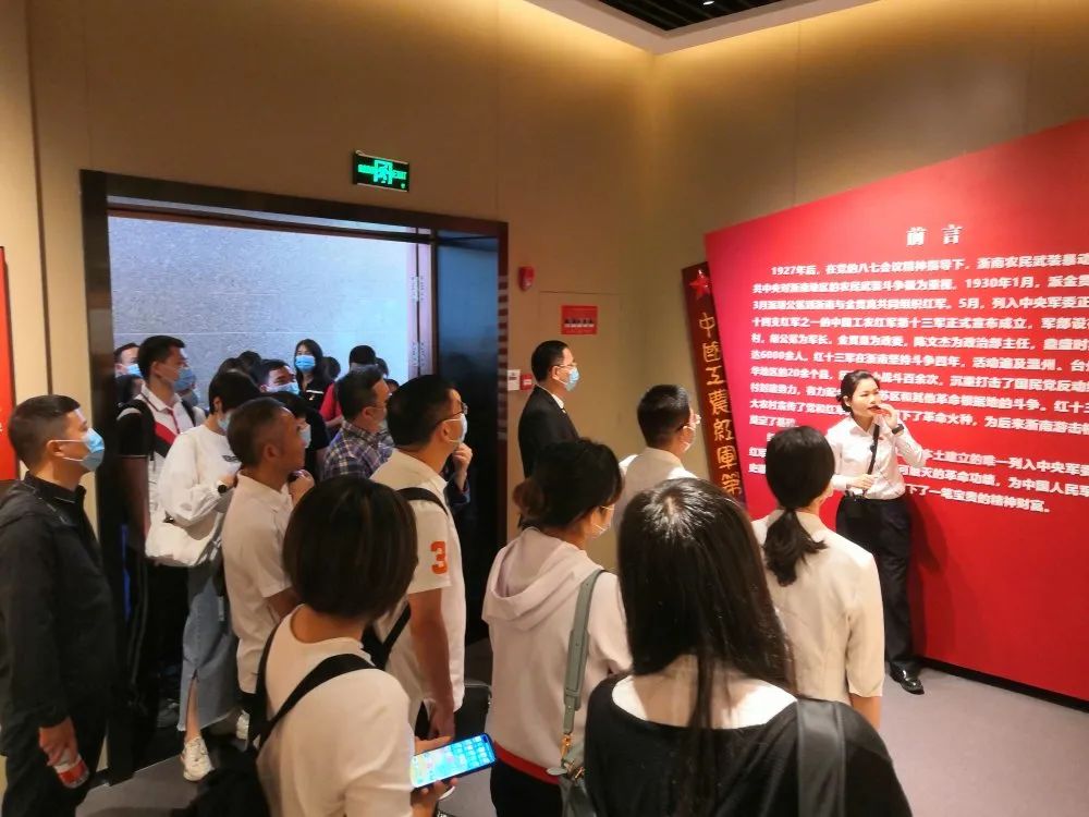 在紀(jì)念碑前敬獻(xiàn)花籃結(jié)束后,全體黨員緊接著來到紅十三軍紀(jì)念館。跟隨講解的步伐,觀看革命實(shí)物和照片,紅十三軍的創(chuàng)建發(fā)展史一幕幕的在每名黨員的腦海中浮現(xiàn)。