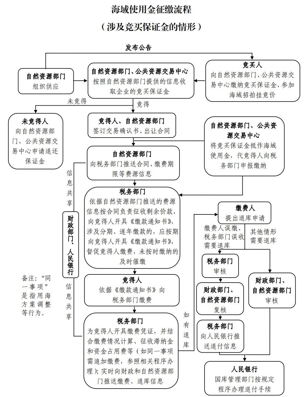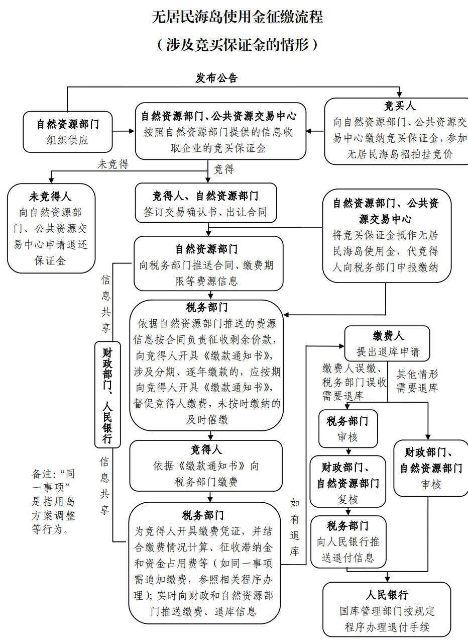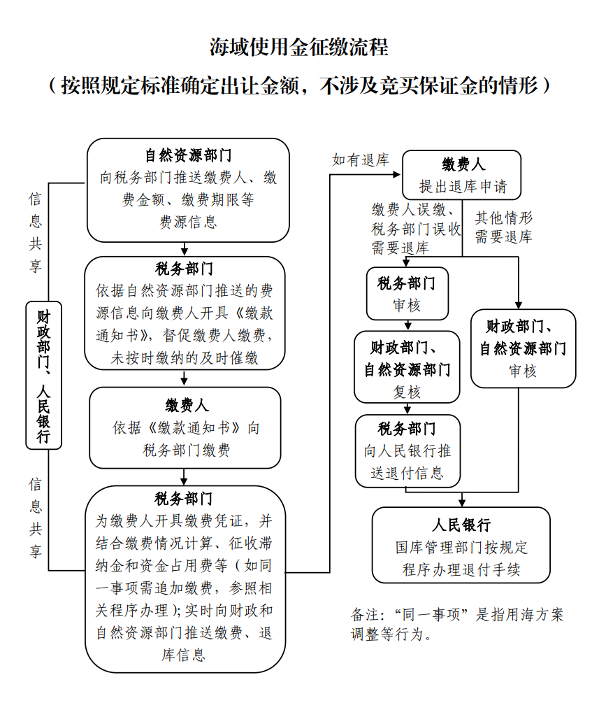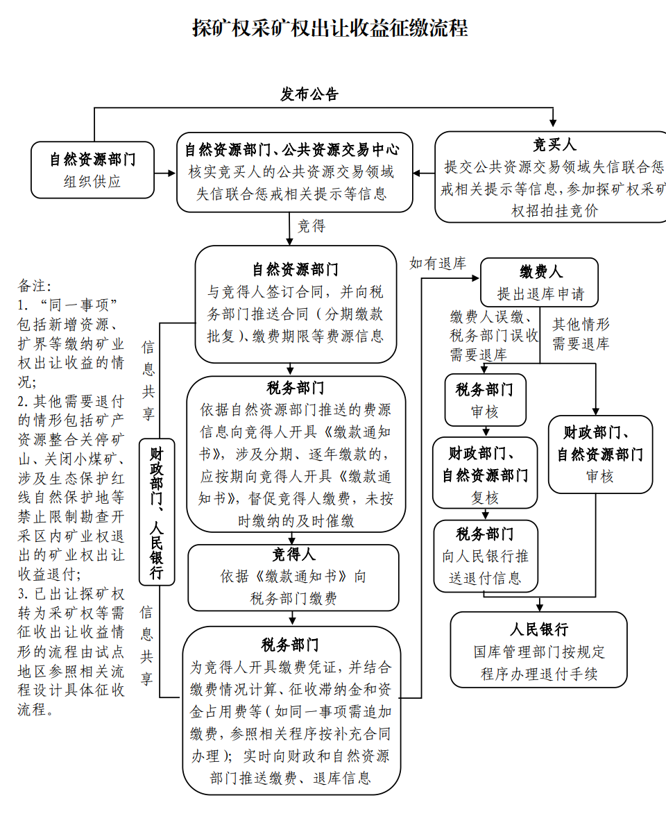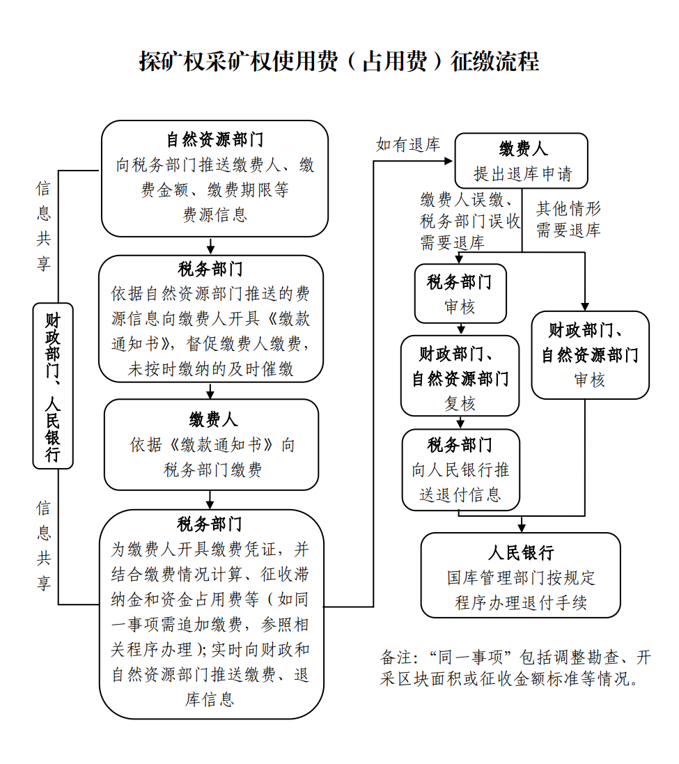 五、稅務(wù)部門應(yīng)當(dāng)商財(cái)政、自然資源、人民銀行等部門逐項(xiàng)確定職責(zé)劃轉(zhuǎn)后的征繳流程,實(shí)現(xiàn)辦事繳費(fèi)“一門、一站、一次”辦理,不斷提高征管效率,降低征管成本。具體征繳流程可參照本通知附件流程圖并結(jié)合當(dāng)?shù)貙?shí)際研究確定。涉及經(jīng)費(fèi)劃轉(zhuǎn)的,方案按程序報(bào)批。