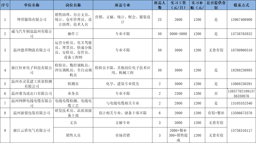 @大學(xué)生,溫州6000多個實習(xí)崗位等你報名!還有實習(xí)工資和補貼