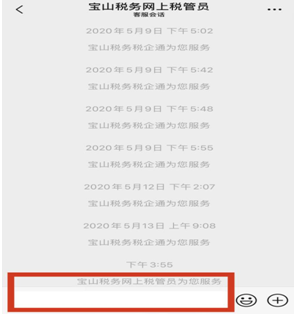 若點(diǎn)擊“人工咨詢”將進(jìn)入“寶山稅務(wù)網(wǎng)上稅管員”客服會(huì)話,即可在對(duì)話框中輸入咨詢問題。當(dāng)收到您的咨詢問題后,我們會(huì)在第一時(shí)間答復(fù)您的個(gè)性化需求。
