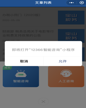 如果點(diǎn)擊“智能咨詢”,將鏈接進(jìn)入12366智能咨詢,開啟智能咨詢;