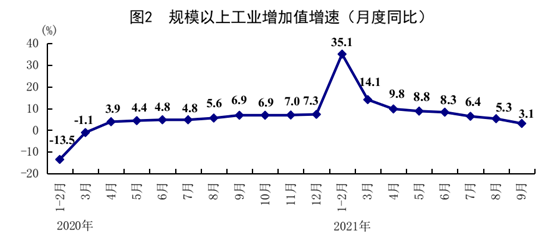 前三季度,全國(guó)規(guī)模以上工業(yè)增加值同比增長(zhǎng)11.8%,兩年平均增長(zhǎng)6.4%。9月份,規(guī)模以上工業(yè)增加值同比增長(zhǎng)3.1%,兩年平均增長(zhǎng)5.0%;環(huán)比增長(zhǎng)0.05%。