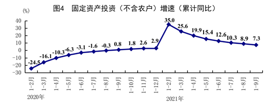 前三季度,全國(guó)固定資產(chǎn)投資(不含農(nóng)戶)397827億元,同比增長(zhǎng)7.3%,兩年平均增長(zhǎng)3.8%;9月份環(huán)比增長(zhǎng)0.17%。