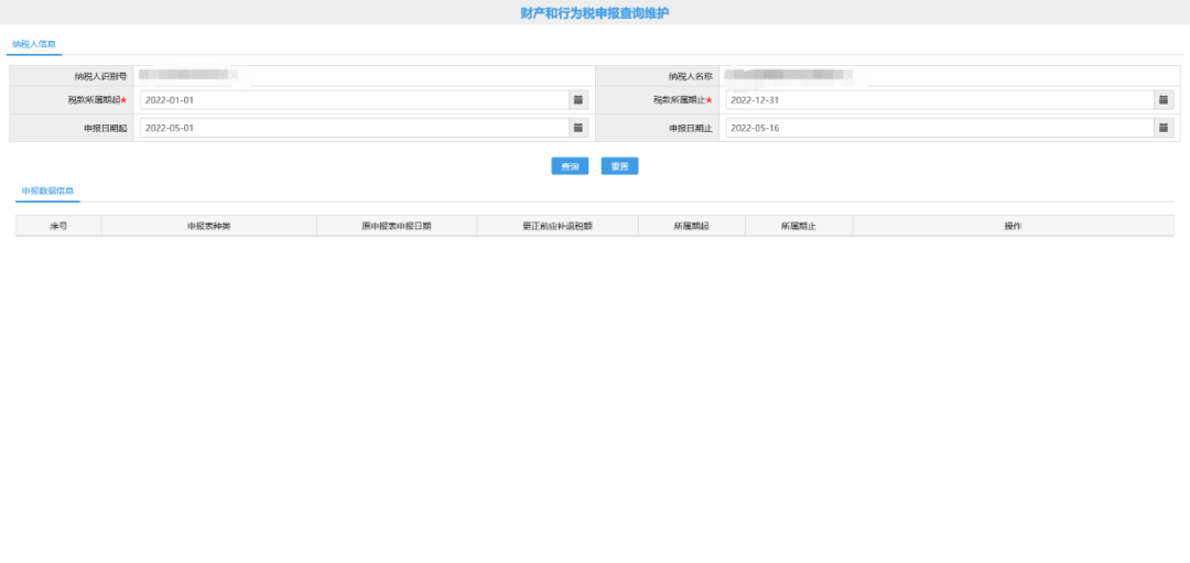 四、財產(chǎn)和行為稅申報查詢維護頁面。