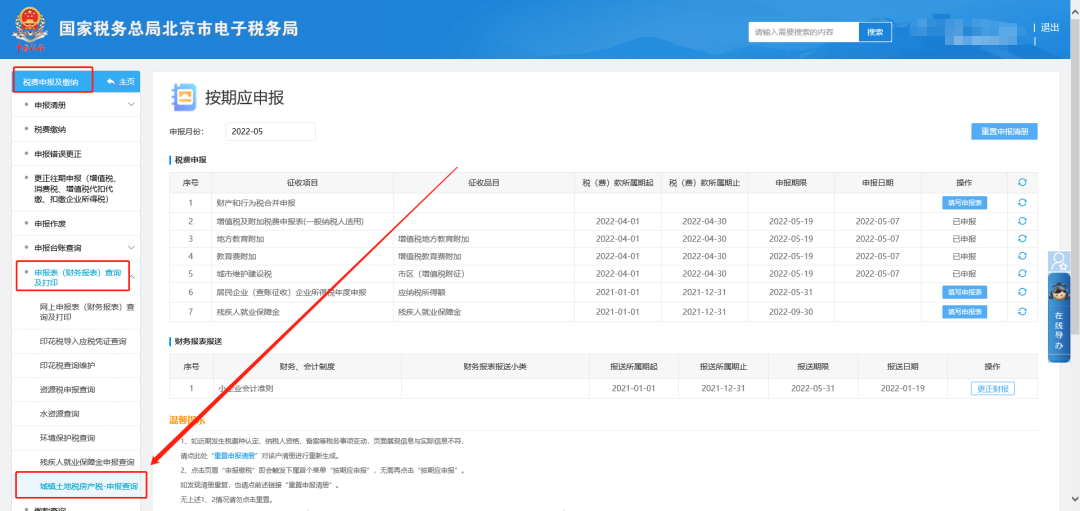 如何查詢城鎮(zhèn)土地使用稅申報表?