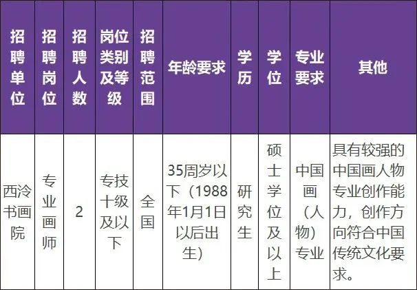 杭州文化廣播電視集團(tuán)所屬事業(yè)單位西泠書畫院決定面向社會公開招聘事業(yè)編制專業(yè)畫師2名。