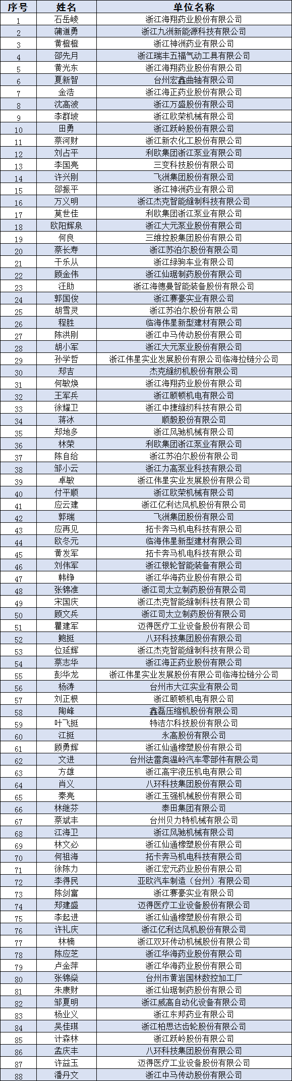 根據(jù)《關(guān)于印發(fā)“臺州技工”星級評價激勵辦法(試行)的通知》(臺政辦發(fā)〔2021〕25 號)、《關(guān)于開展2023年“臺州技工”星級評價激勵工作的通知》(臺人社發(fā)〔2023〕44號)文件精神,經(jīng)市縣兩級“臺州技工”星級評價激勵工作領(lǐng)導(dǎo)小組辦公室評選和公示,臺州市“臺州技工”星級評價激勵工作領(lǐng)導(dǎo)小組研究,確定石岳崚等88人為五星“臺州技工”、趙志兵等140人為四星“臺州技工”。