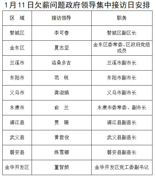 金華市根治欠薪工作領(lǐng)導(dǎo)小組辦公室關(guān)于開展欠薪問題集中接訪活動的公告