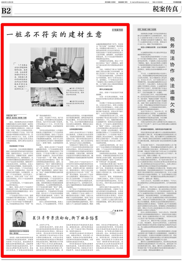 7戶關(guān)聯(lián)企業(yè)均從事建材購銷等業(yè)務,表面上看,企業(yè)經(jīng)營活動似乎并無不妥。但檢查人員比對分析這些企業(yè)開業(yè)后不同時期的開票信息時,卻發(fā)現(xiàn)了一些異常之處…… 最近,國家稅務總局天水市稅務局稽查局聯(lián)合公安 ... 查看全文